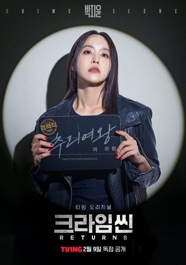 박지윤은 9일 공개된 티빙 오리지널 시리즈 ‘크라임씬 리턴즈’(연출 윤현준, 박지예, 제작 SLL, 스튜디오슬램, 제공 티빙(TVING))에서 추리, 진행, 연기 등 모든 면에서 완벽한 활약을 선보이며 ‘퀸지윤’의 입지를 톡톡히 다졌다.