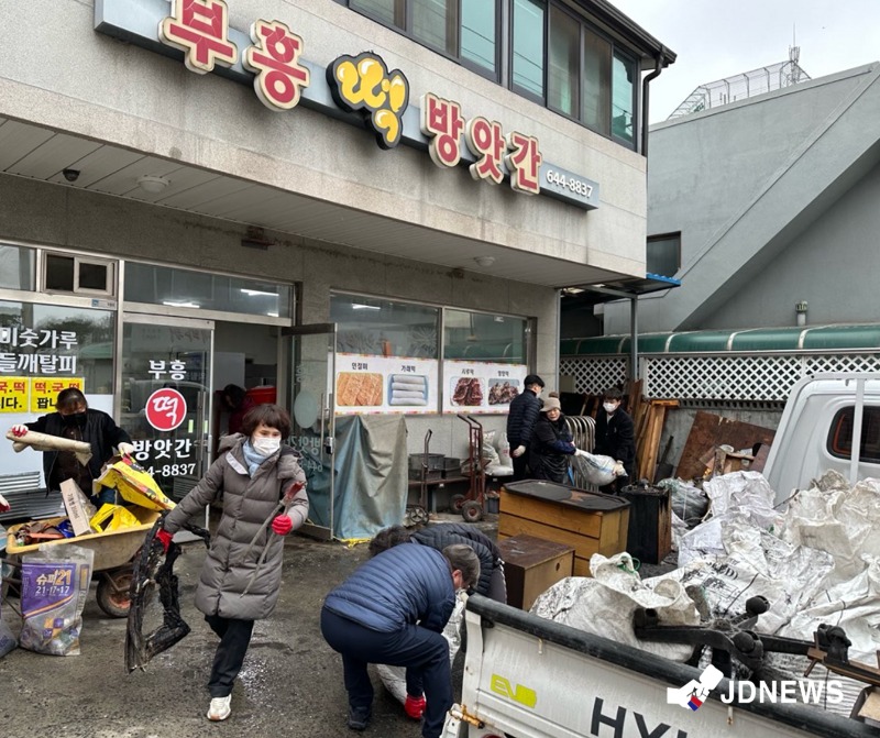 신백동 주민자치위원회(위원장 문정옥) 회원들은 화재 상가를 직접 방문하여 십시일반 모은 위로금과 구호물품을 전달하는 한편, 화재 현장의 폐기물 처리 등 피해복구에 직접 발벗고 나섰다.
