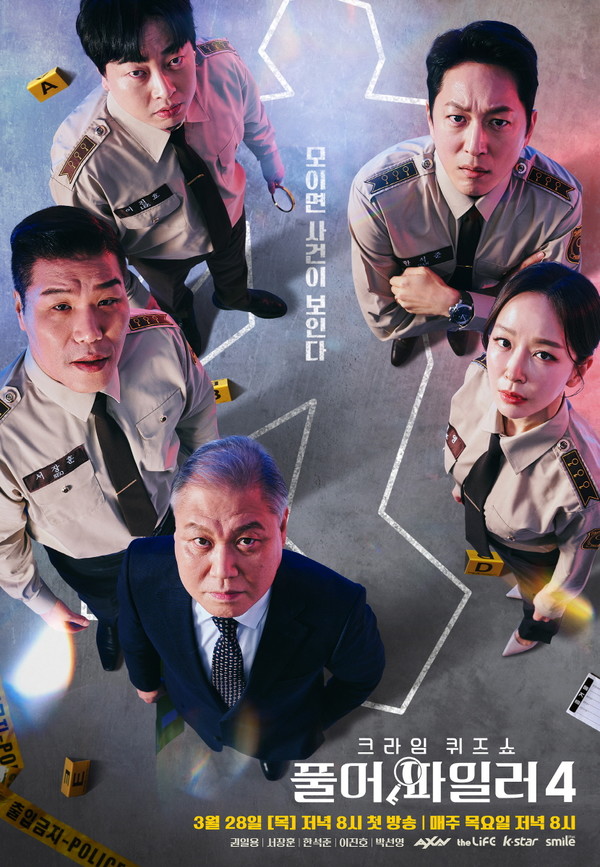 오는 3월 28일(목) 저녁 8시에 첫 방송 예정인 '풀어파일러4'(제작 AXN, K-STAR, 더라이프, SmileTV Plus) 측이 13일, 범죄 현장에 뭉친 5MC 권일용, 서장훈, 한석준, 이진호, 박선영의 모습을 담은 메인 포스터를 공개해 첫 방송에 대한 기대감을 고조시킨다.