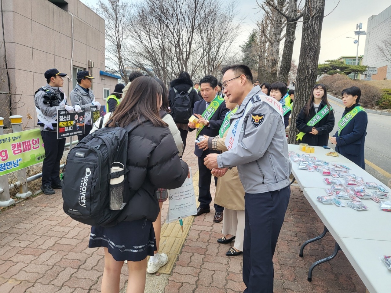 제천경찰서, 제천교육지원청, 제천시청소년상담복지센터, 청소년육성회 등 유관기관이 함께한 이번 캠페인에서는 지역사회가 하나 되어 학생을 보호하고 안전한 교육환경 조성을 위해 힘쓰는 모습이 돋보였다.