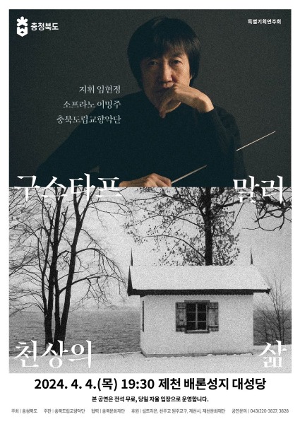 한편, 2024년 충북도립교향악단의 공연 일정은 도립교향악단 홈페이지(www.chungbuk.go.kr/art/index.do)에서 확인할 수 있다.