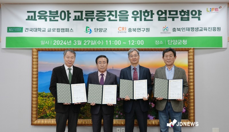 단양군-충북연구원-충북인재평생교육진흥원-건국대 글로컬캠퍼스 업무협약