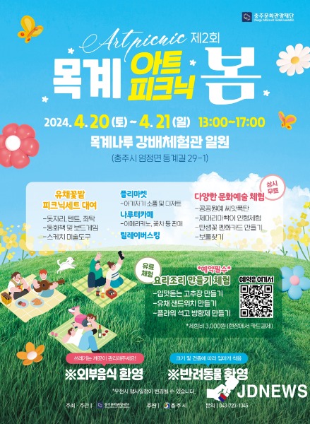 담당자는 “목계나루문화공간은 목계아트피크닉-봄 행사를 필두로 다양한 전시, 공연 등 복합 문화 행사가 펼쳐질 예정으로, 방문객들에게 이 곳이 365일 쉬지 않는 즐거움이 있는 곳으로 인식되길 바란다”라고 전했다.프로그램 관련 자세한 문의는 문화사업팀(☏723-1345)로 하면 된다.