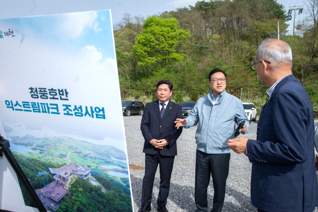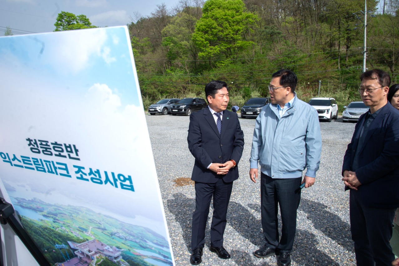 제천시는 16일 기획재정부 김병환 제1차관이 소규모 관광단지 후보지인 제천시 청풍면 신리 199-3번지 일원을 방문하여 제천시 청풍호반 익스트림파크 조성사업 등에 대한 현황조사 및 현장 애로 사항을 청취했다고 밝혔다.