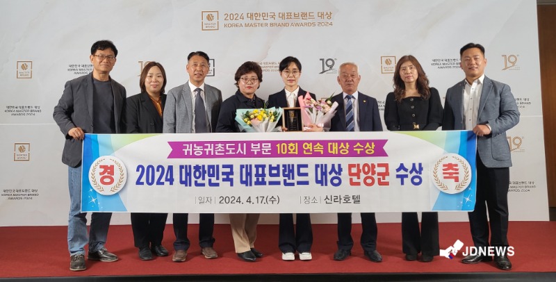 지난 17일 서울 신라호텔에서 열린 ‘2024 대한민국 대표브랜드 대상’ 시상식에서 귀농귀촌도시 부문 10년 연속 대상의 영예를 안았다.