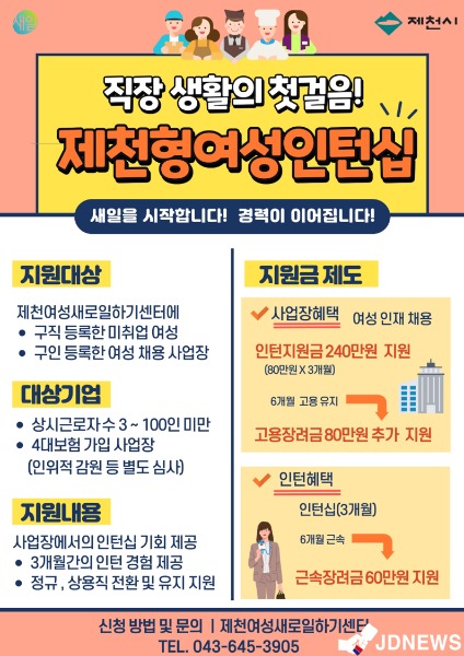 이 사업은 제천여성새일센터에서 진행하고 있으며 기타 자세한 사항은(043-645-3905)로 문의하면 된다.