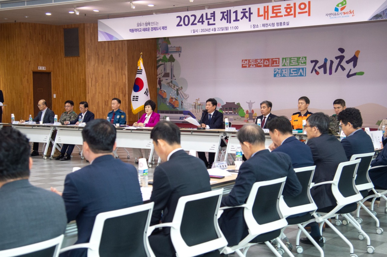 제천시 내토회(회장 김창규 제천시장)가 22일 제천시청 청풍호실에서 관내 46개 기관·단체장이 참석한 가운데 2024년 첫 번째 내토회의를 개최했다.