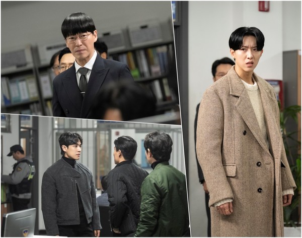 SBS 금토드라마 ‘7인의 부활’(연출 오준혁·오송희, 극본 김순옥, 제작 초록뱀미디어·스튜디오S) 측은 2일 경찰서에서 포착된 매튜 리(=심준석/엄기준 분), 민도혁(이준 분), 황찬성(이정신 분)의 스틸컷을 공개했다. 민도혁이 더욱 거대해진 ‘악’의 연대를 무너뜨릴 수 있을지 궁금증을 증폭시킨다.