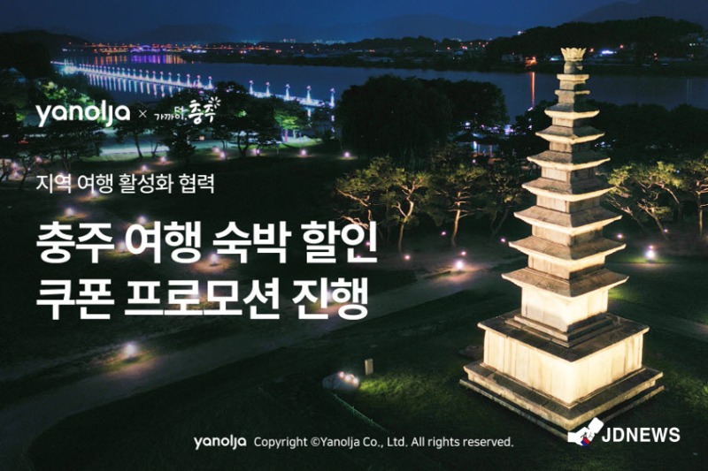 충주시는 16일부터 (주)야놀자와 협업을 통해 충주 방문 여행객들에게 숙박 할인 혜택을 제공하는 프로모션을 진행한다고 밝혔다.