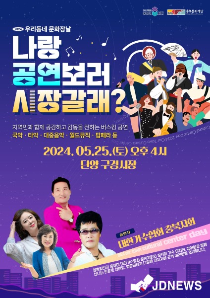 충청북도와 충북문화재단에서 주관하는 이 행사는 볼거리, 즐길 거리가 부족한 전통시장에 문화예술공연을 정기적으로 개최하고자 마련됐다.