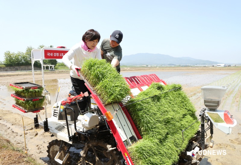 한편, 이번 모내기에 이용된 이앙기는 지난해 5월 국내 최초로 농기계 자율주행 시스템의 국가 검사를 통과한 자율주행 이앙기로 우리나라 독자 기술로 개발됐다.