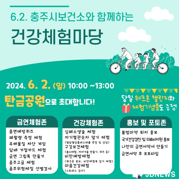 건강체험마당과 관련한 자세한 내용은 충주시보건소 건강증진과(☏850-3521)로 문의하면 된다.