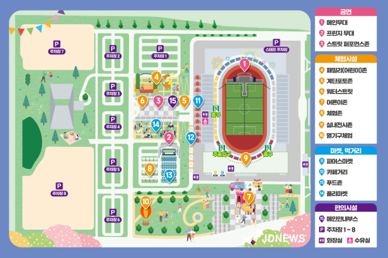 또한 에어짚라인, 공기 놀이터(에어바운스), 드론 축구나 로봇 사격 게임, FC충주 선수들이 운영하는 축구 체험, 머그컵이나 키링 만들기 체험 등 아이들을 위한 놀거리를 패밀리 존이나 먹거리 존에 다채롭게 준비했다.