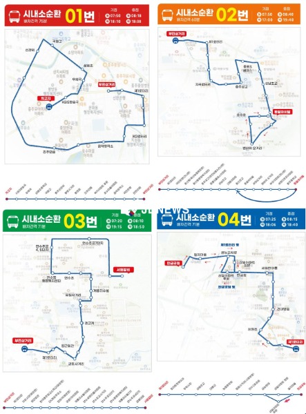 시내 小순환 4개 노선 운행, 6. 3일부터 노선 운행