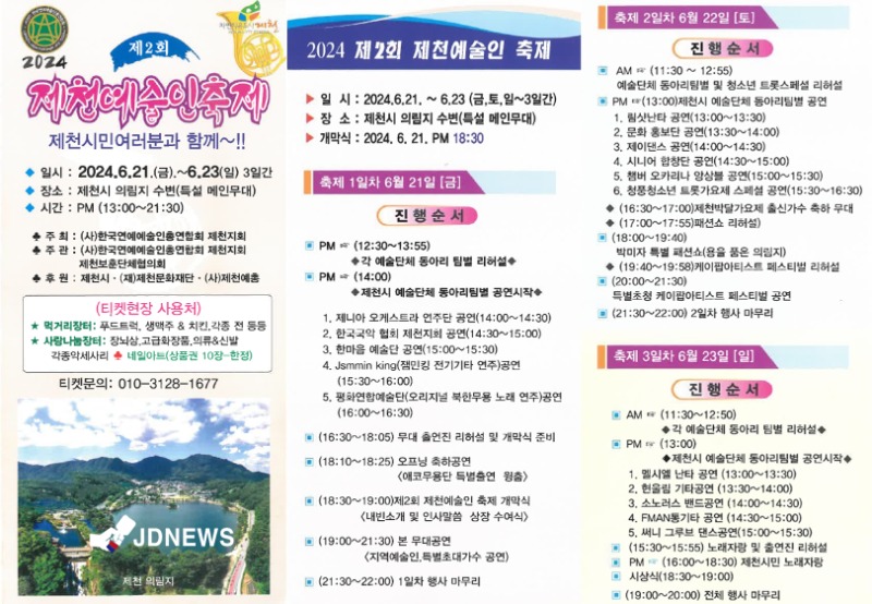 이번 축제에는 제천시 예술단체 동아리팀별 공연을 시작으로, 제니아 오케스트라 연주단 공연, 림샷난타공연, 시니어 합창단 공연, 청풍청소년 트롯가요제 스페셜 공연 등 다채로운 공연들이 준비되어있다.