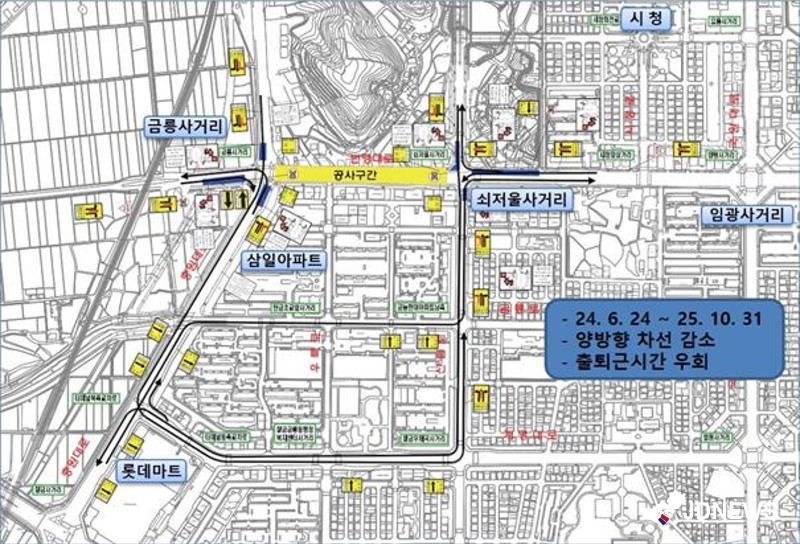 공사로 인한 차선 감소에 따른 출퇴근시간 교통정체 예상