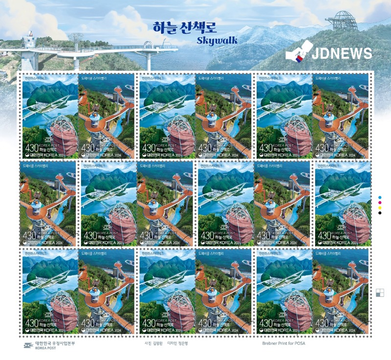 기념우표에는 단양의 ‘만천하스카이워크’와 동해 ‘도째비골 스카이밸리’ 두 곳의 하늘 산책로를 시원하게 내려다보는 항공뷰가 담겼다.