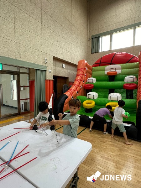 동생이 힘들어하는 모습을 본 6학년 한 학생은 “동생아, 형이 뒤에 있으니 걱정 말고 마음껏 뛰어!”라며 든든하게 뒤에서 지켜봐 주기도 하였고, 성공하면 박수를 치며 응원하였다. 유치원과 초등 어린이들은 오전과 오후 번갈아 가면서 에어바운스 놀이터에서 신나고 안전하게 활동을 마쳤다. 체험학습을 담당한 지0영 선생님은 “2학기에도 여러분들을 위해 에어바운스 체험활동을 전교생이 함께 또 한 번 해볼까?”라고 했고 그 말을 들은 학생들 모두의 입에서는 환호성이 나왔다.