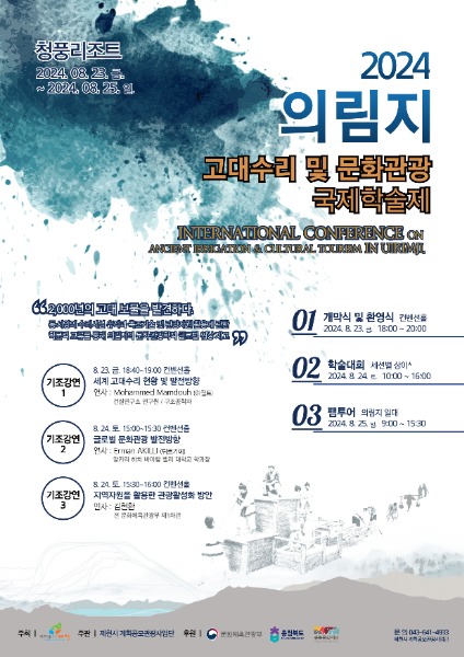 제천시 계획공모 관광사업단은 오는 23일부터 25일까지 2박 3일간 청풍리조트와 제천시 일원에서 ‘2024 고대수리 & 문화관광 국제학술제’ 행사를 개최한다.