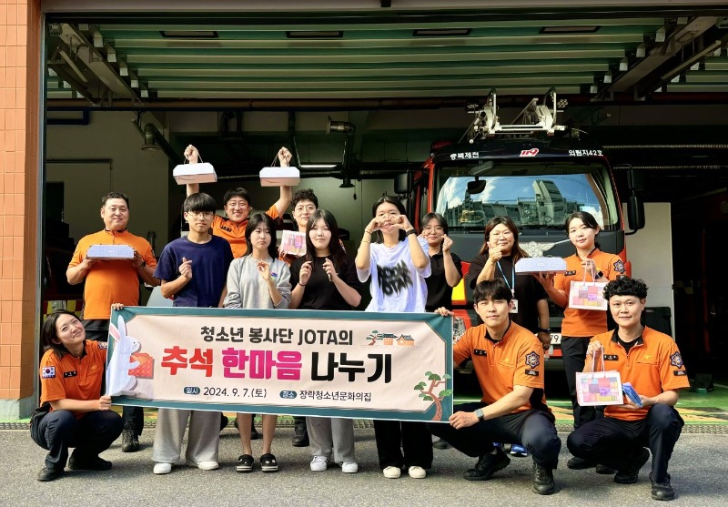 제천시 장락청소년문화의집(관장 김영수)은 9월 7일 청소년봉사단‘JOTA’와 함께 제천소방서를 방문하여 ‘추석 한마음 나누기’를 진행했다.
