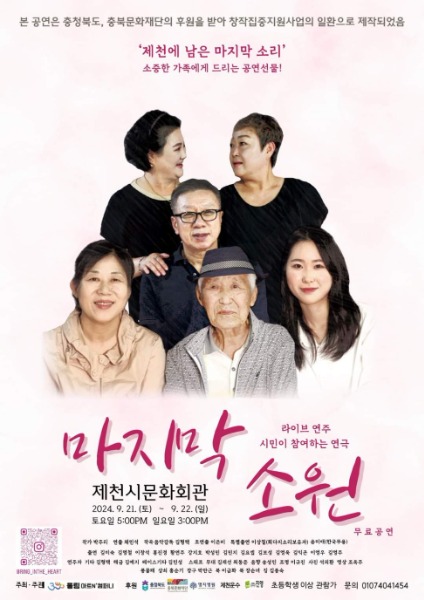 제천의 소중한 전통문화를 담은 창작 연극 <마지막 소원>이 9월 21일과 22일 제천시문화회관에서 공연된다.