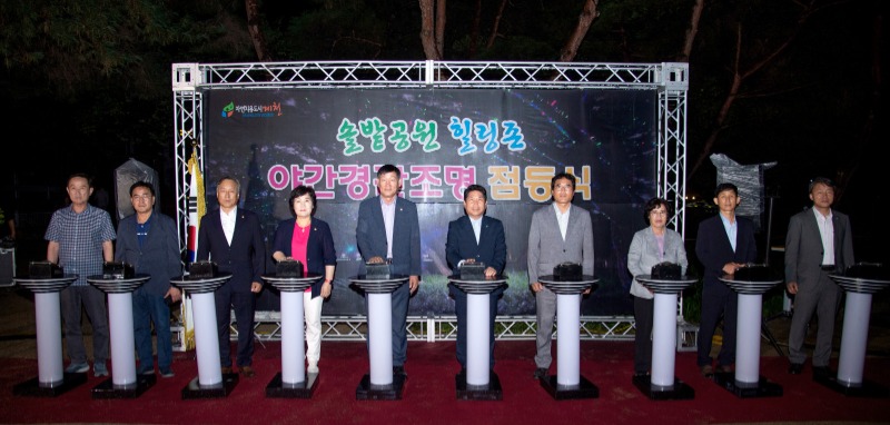 제천시는  9월 13일 솔밭공원 힐링존에 야간경관조명 설치를 완료하고  점등 퍼포먼스를 선보였다.