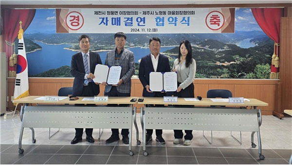 지난 12일, 제주시 노형동마을회장협의회는 충북 제천시 청풍면을 방문해 청풍면이장협의회와 자매결연 협약을 체결했다.