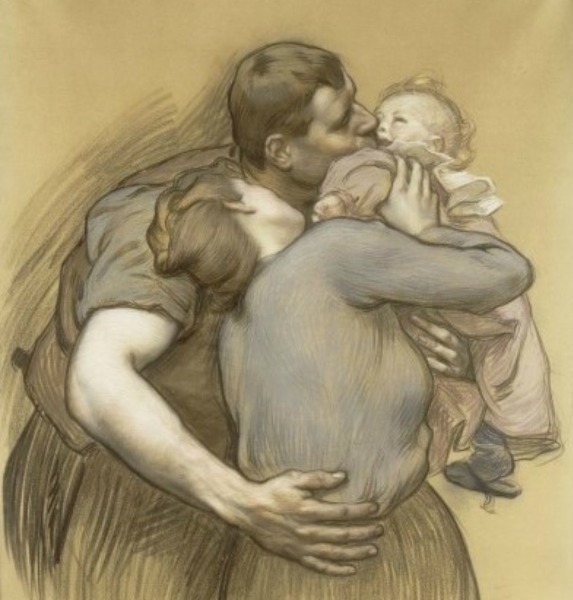 한숨과 함께 시선을 돌린 곳은 식탁 위의 명화집. 나는 남편에게 빅토르 프루베의 <가족>이라는 그림을 보여주며 말했다. “여보, 이 그림 속 남편 얼굴이 당신 젊을 적 모습과 참 닮았어요.” 그림 속 남자는 소매를 걷어붙이고 아내의 허리를 다정하게 감싸 안고 있다. 아기를 안고 있는 아내의 뒷모습은 아기와 뽀뽀하는 남편을 향해 행복한 눈빛을 보내는 듯하다. 아기의 웃음은 순수한 행복을 전한다. 남편의 투박한 손, 부부의 소박한 옷차림. 우리 부부는 오래전 단칸방에서 두 아이를 키우던 시절을 떠올렸다.
