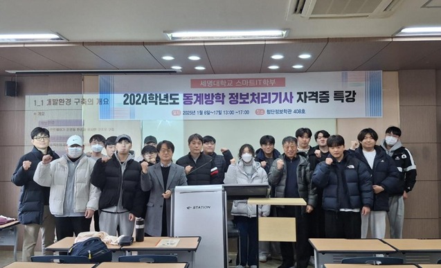 세명대학교 스마트IT학부는 지난 06일부터 17일까지 총 10일에 동안 3학년 재학생들을 대상으로 정보처리기사 자격증 특강을 시행한다.