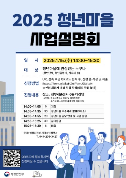 정부는 오는 15일 오후 2시, 세종특별자치시 정부세종청사 6동 대강당에서 청년마을 사업설명회를 개최한다.
