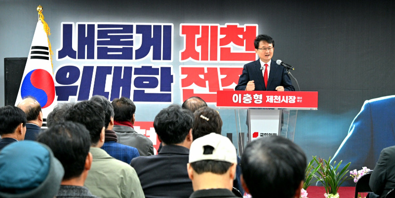 제천시장에 출마한 국민의힘 이충형 예비후보가 14일 선거사무소 개소식을 열고 본격적인 선거 행보에 나섰다. 주말인 이날 '이충형의 공감 토크' 개소식에는 500여명의 지지자들이 몰려 성황을 이뤘다.