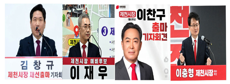 제천시장 공천 신청자는 김창규 시장, 이재우 전 기획예산처 부이사관, 이찬구 제천발전위원회 회장, 이충형 중앙당 대변인 등 4명이다.
