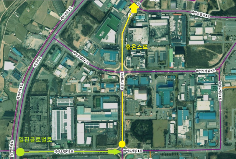 ‘휴온스로(Huons-ro)’, ‘일진글로벌로(IljinGlobal-ro)’