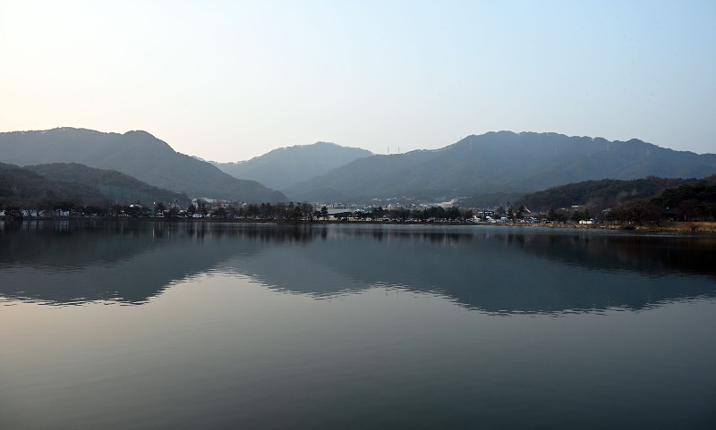 흐릿한 대기 속에서 산 능선은 부드럽게 겹겹이 이어졌고, 호수는 그 모든 것을 고스란히 받아들이며 ‘정지된 시간’ 같은 인상을 남겼다.
