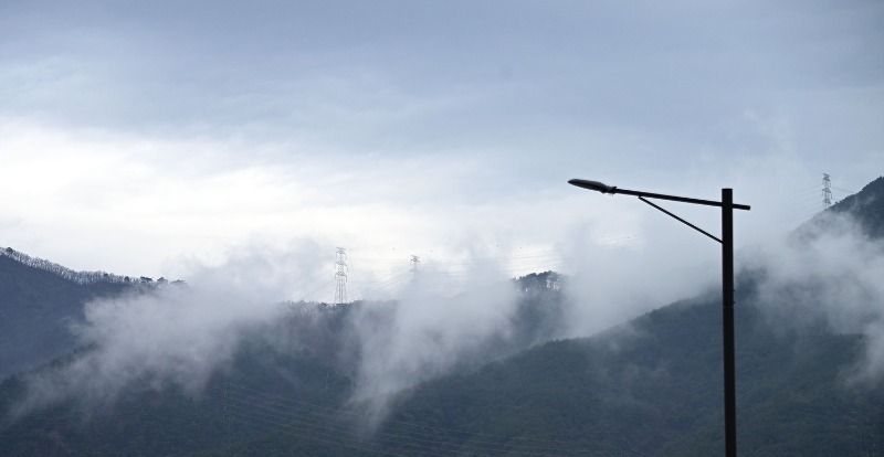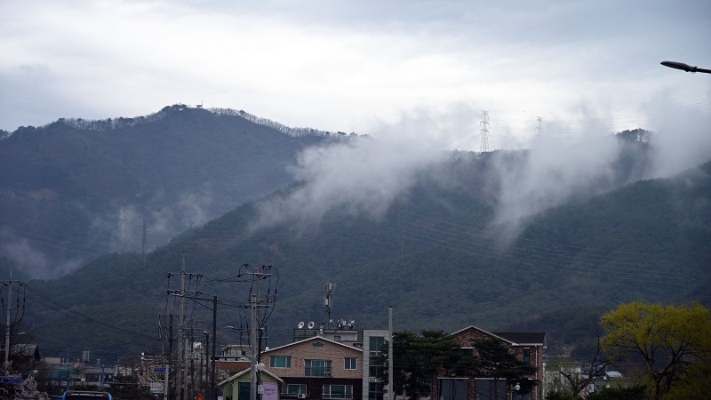마치 산이 숨을 고르듯, 하얗게 피어오른 물기는 능선을 따라 부드럽게 번져간다.