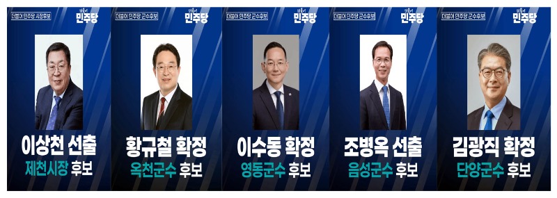 더불어민주당이 2026년 제9회 전국동시지방선거를 앞두고 충북 지역 기초단체장 후보 5명을 확정했다.