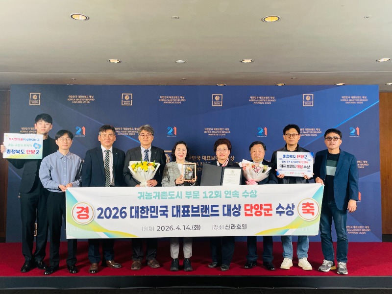 단양군은 ‘2026 대한민국 대표브랜드 대상’ 시상식에서 귀농귀촌도시 부문 12년 연속 대상을 수상했다고 15일 밝혔다.