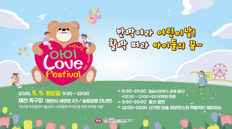 이번 행사는 오전 9시 30분부터 오후 3시까지 제천족구장에서 열리며, 어린이와 가족이 함께 즐길 수 있는 기념식과 공연, 체험활동 등 다양한 프로그램으로 꾸며질 예정이다.
