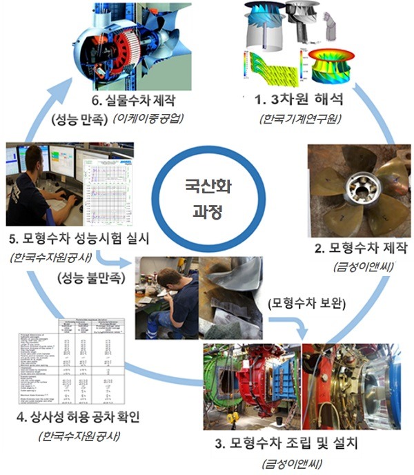 사업 주관기관인 한국수자원공사가 설계 검증 및 품질관리를 맡고 한국기계연구원은 러너 설계, 금성이앤씨에서 모의실험용 수차를 제작했다.