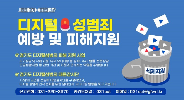 경기도가 디지털성범죄 피해자를 위한 피해 상담, 디지털 기록 삭제 지원, 유포 모니터링 등을 전담하는 조직을 구성하는 등 본격적인 디지털성범죄 피해지원 사업에 착수했다.