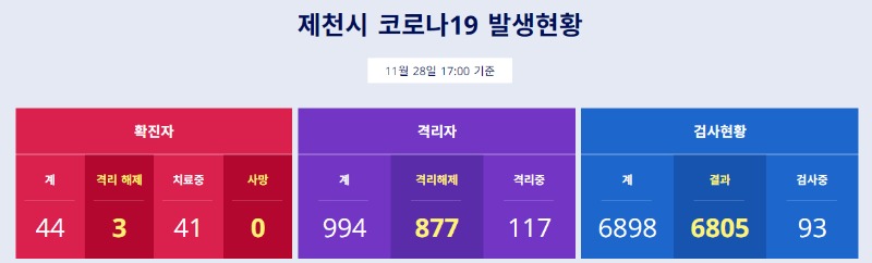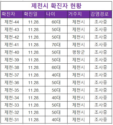 28일 17시까지 14명이 확진되었고, (제천 거주자 13명,평창 거주자는 1명)아직 검사 결과를 기다리는 접촉자들이 있어 확진자 수는 더 늘어날 전망이다.