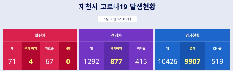(제천=Jd News) 이용희 기자 = 제천시는 코로나바이러스 감염증(코로나19) 확진자가 30일 12시 기준 14명이 추가로 발생했다고 밝혔다.