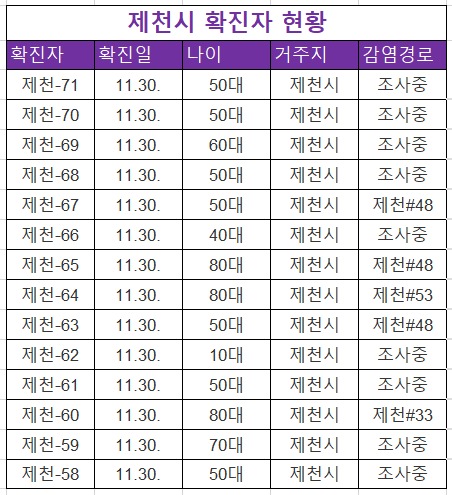 감염경로는 역학 조사중으로 동선 파악후 제천시 홈페이지에 즉시 공개한다고 했다.