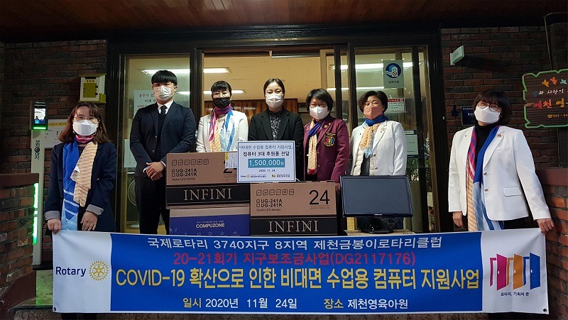 (제천=Jd News) 이용희 기자 = 제천금봉이로타리클럽(회장 도원 고순덕)은 이번 코로나-19 확산으로 수업용 전자기기가 부족했던 제천영육아원(원장 강숙진)을 방문하여 컴퓨터 3대(150만원 상당)를 후원했다.