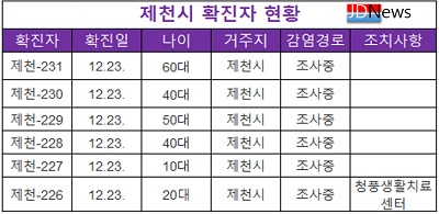 23일 제천시에 따르면 이날 오전 보험사 직원 20대 남성 A씨(제천 226번)의 밀접접촉자로 60대 여성 B씨(제천 231번)이 추가 확진됐다.