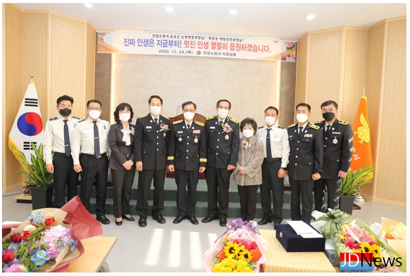 JD News 이용희 기자 = 단양소방서(서장 이상민)는 24일 오전 2020년 하반기 소방공무원 퇴임식을 실시했다고 밝혔다.