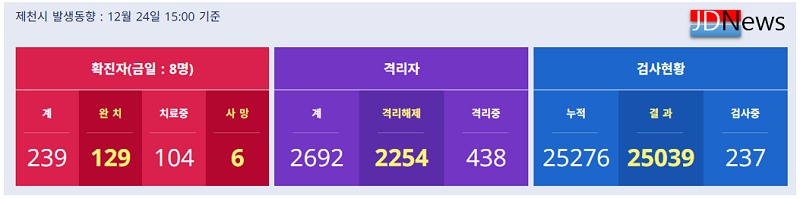 ▲ 제천시 홈페이지 코로나19 확진자 현황
