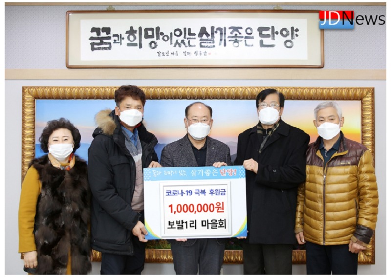 JD News 이용희 기자 = 가곡면 보발1리 마을회(이장 박남진)는 지난 28일 단양군청을 방문해 코로나19 극복 후원금 100만원을 전달했다.