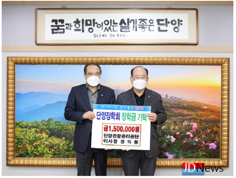 JD News 이용희 기자 = 단양관광관리공단 장익봉 이사장은 지난 28일 지역 명문학교 육성 및 인재 양성을 위해 사용해 달라며 단양장학회에 장학금 150만원을 기탁했다.