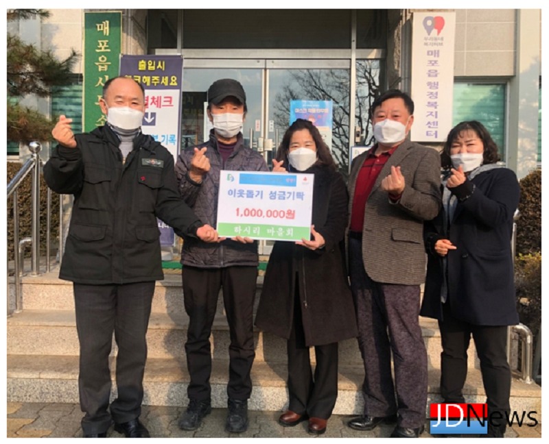 매포읍 하시리는 매년 지속적으로 소외계층을 위한 생필품 기탁, 국군 장병들을 위한 위문품 전달 등 내색 없이 사랑을 실천하는 기부천사들이 있어 매포권역의 자발적인 나눔 문화 정착에 귀감이 되고 있다.